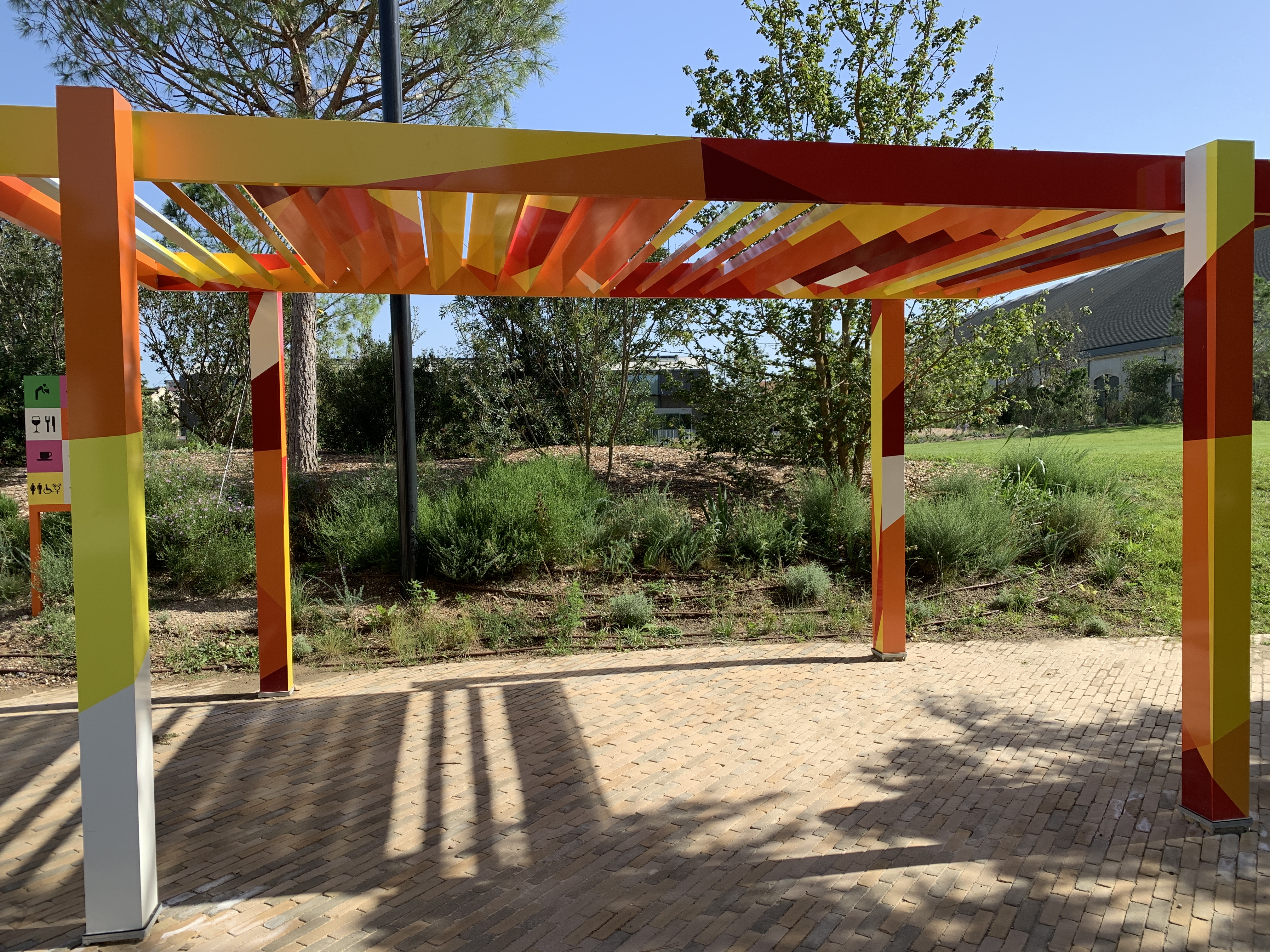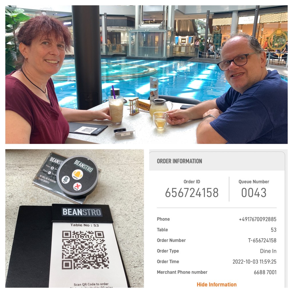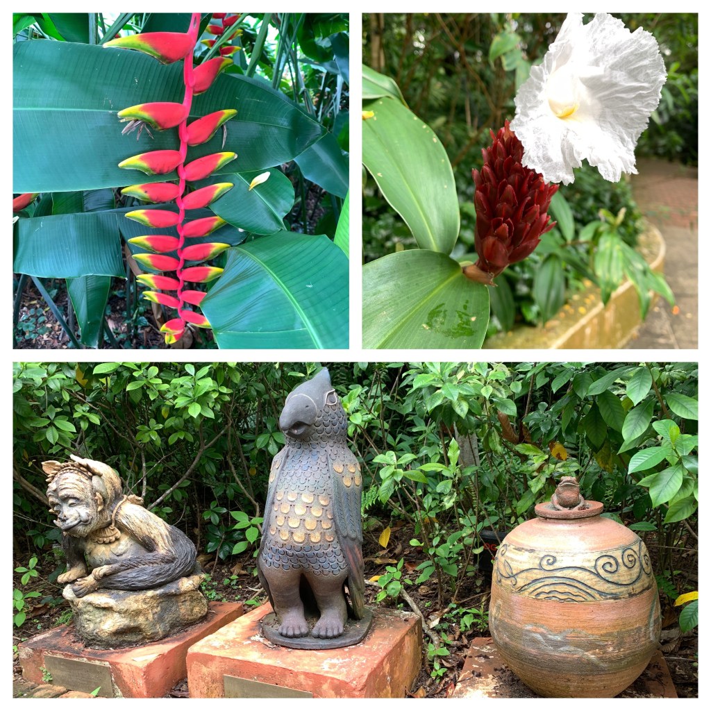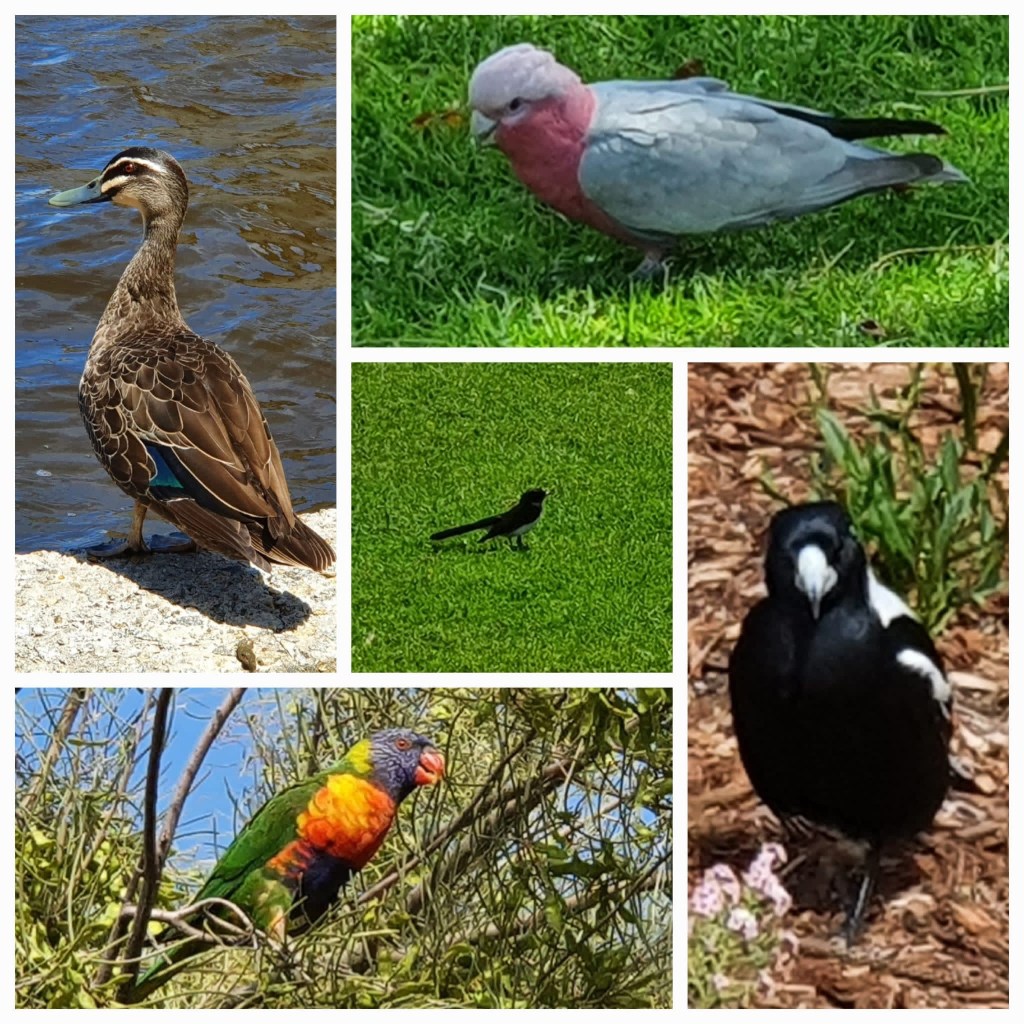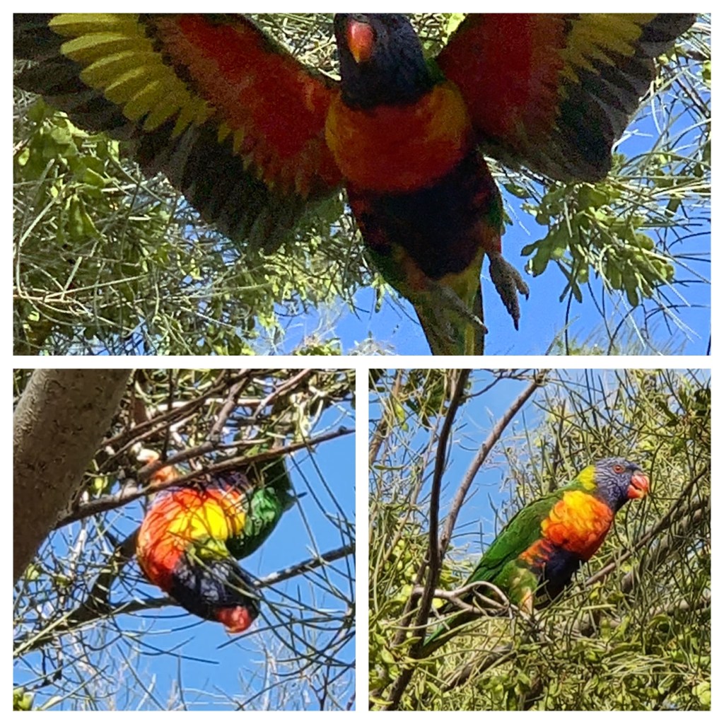 Immer wieder schöne Ausblicke auf unserem tollen Rundgang, Bänke Pavillons, alles sehr schön. Kurz vor dem Ende der Runde plötzlich ein großer Schwarm Allfarbloris (der englische Name Rainbow Lorikeet gefällt mir besser) direkt über uns im Baum, die begeistert über die Samenkapseln herfallen.
