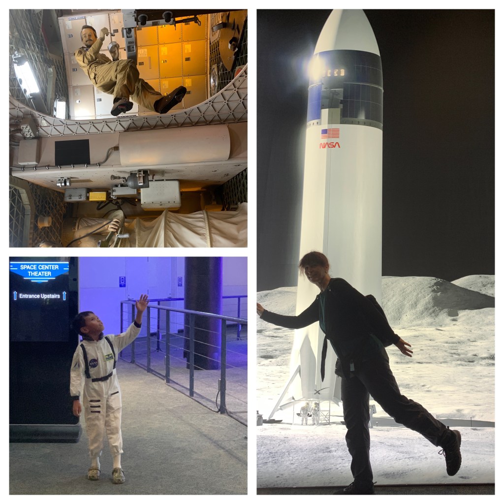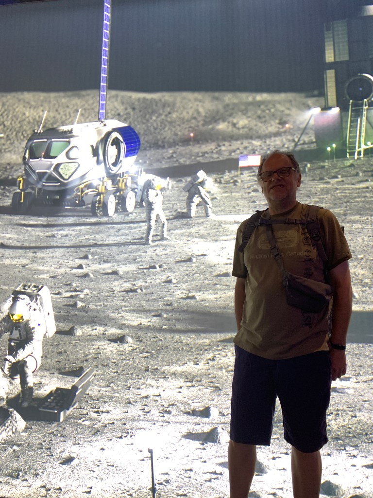 Wir laufen entlang der nach verschiedenen Themen unterteilten Runde, besonders witzig ist der Prähistorische Garten mit vielen Farnen und Pflanzen, die es schon Jahrmillionen gibt, und natürlich einem Bronze-Dinosaurier.